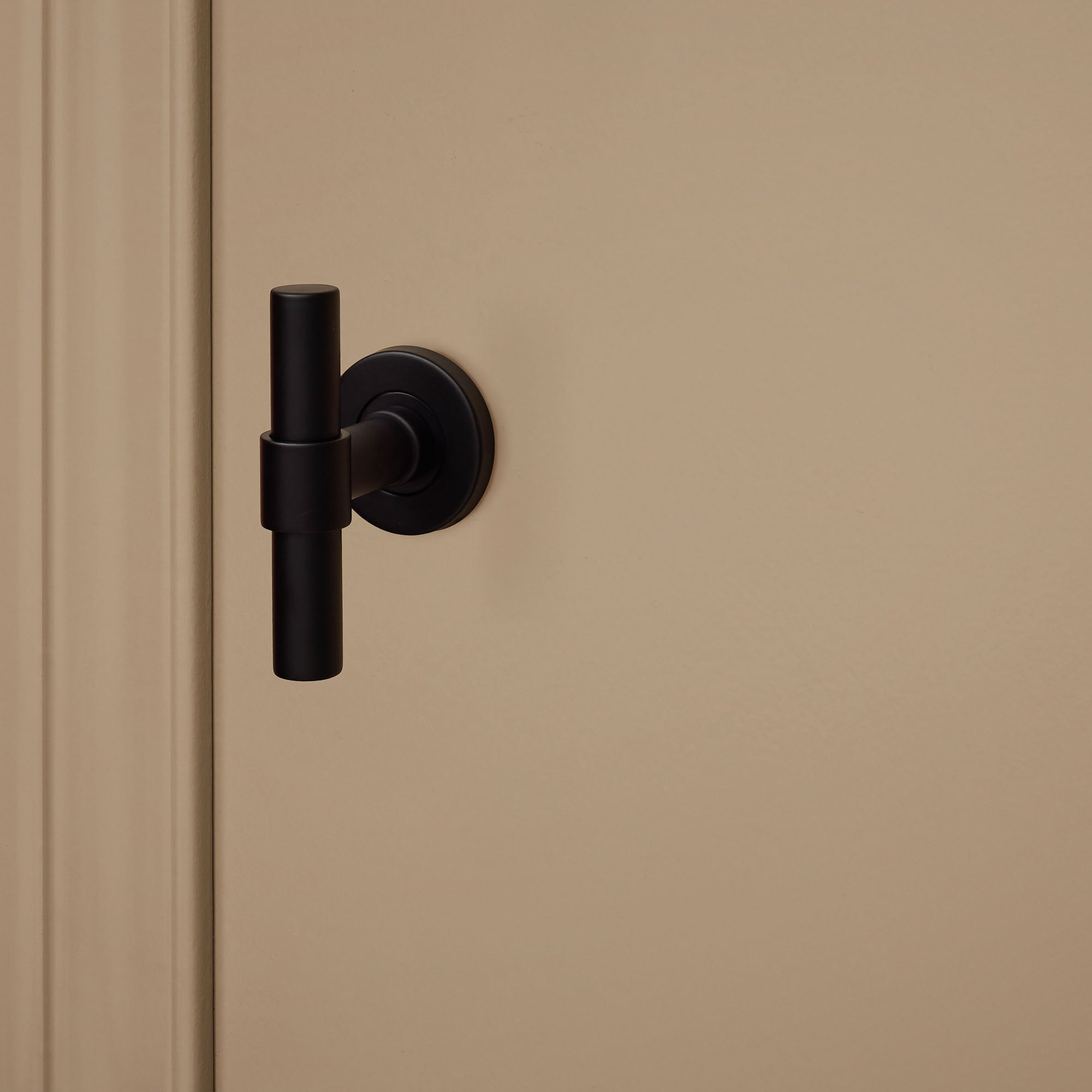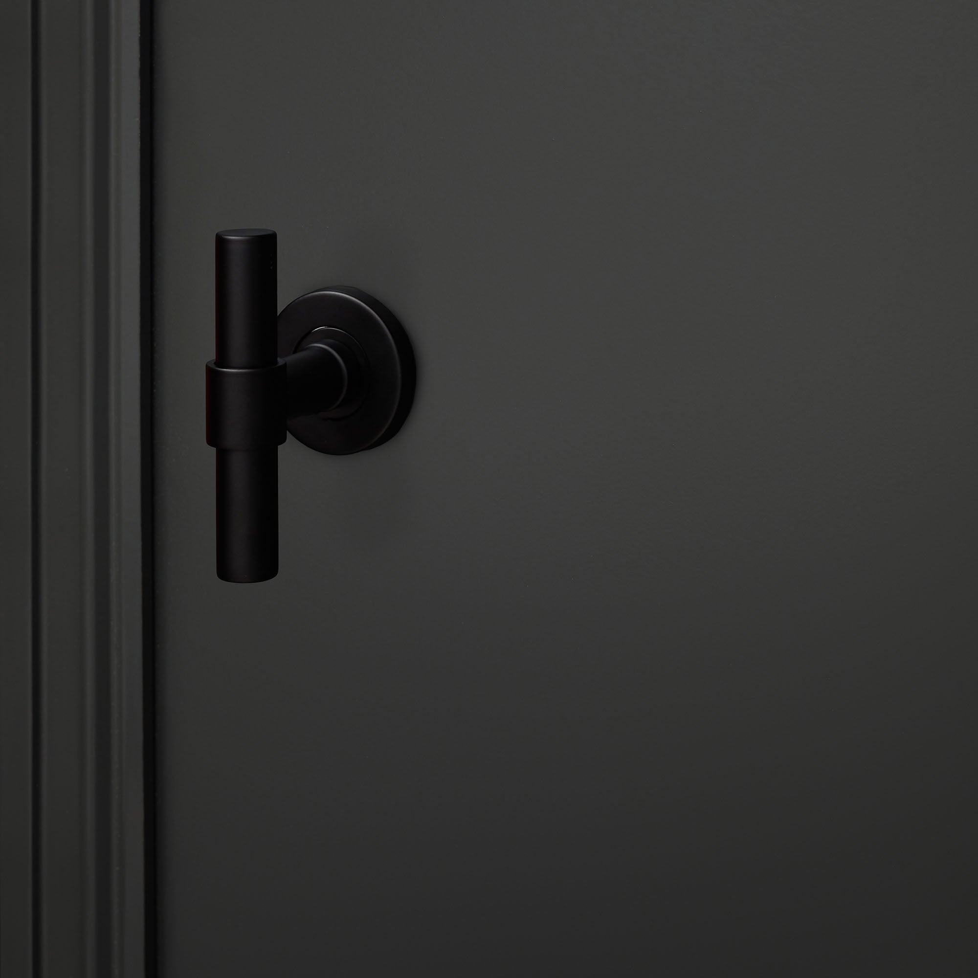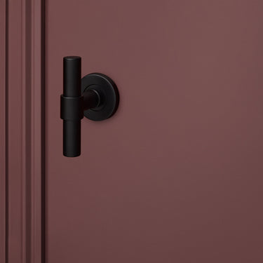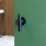 The black Pesaro door handle with a round rosette has a sleek, unique shape with a soft touch. The L/T model is instantly striking, yet subtle enough to complement any interior. Different, but never too much.
