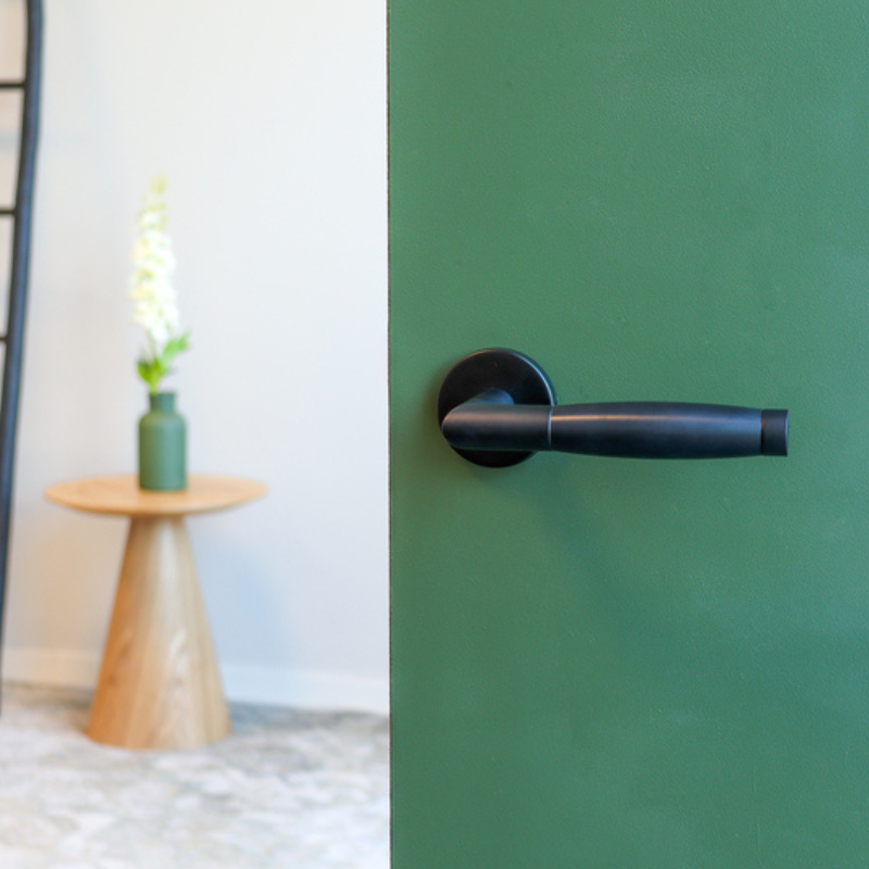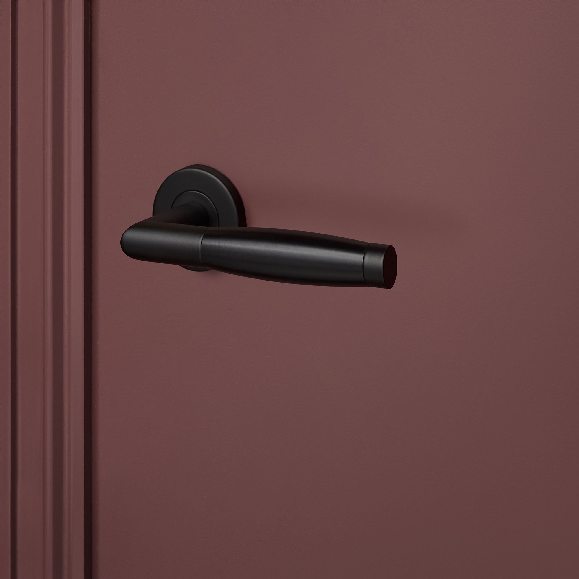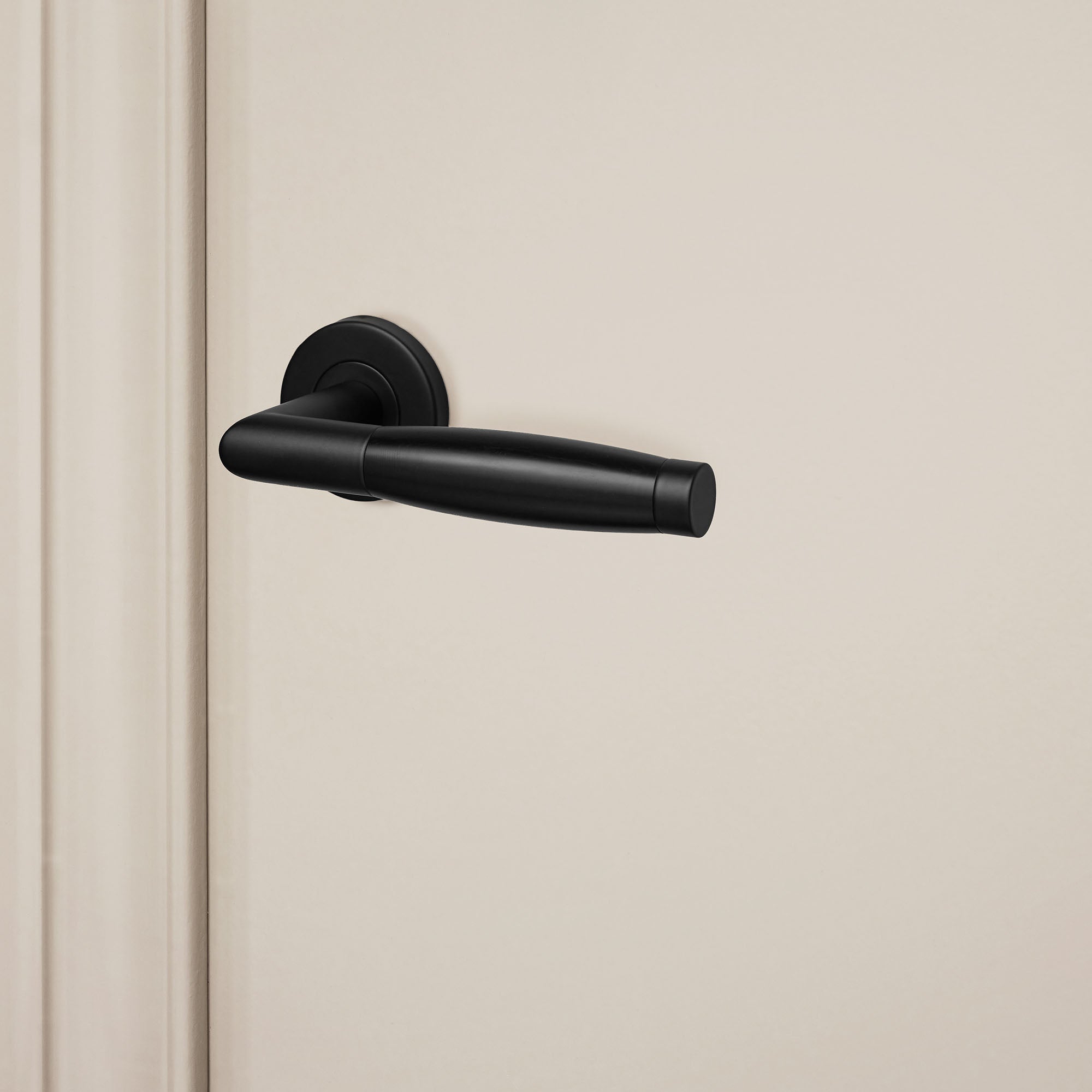 The black Ascoli door handle with a round rosette combines the timeless design of the 1930s with modern functionality. The matte black finish and classic round rosette give this door handle an authentic, elegant look that fits perfectly into minimalist, 1930s, and classic interior styles. This door handle adds a refined charm to your doors, with a nod to the past.