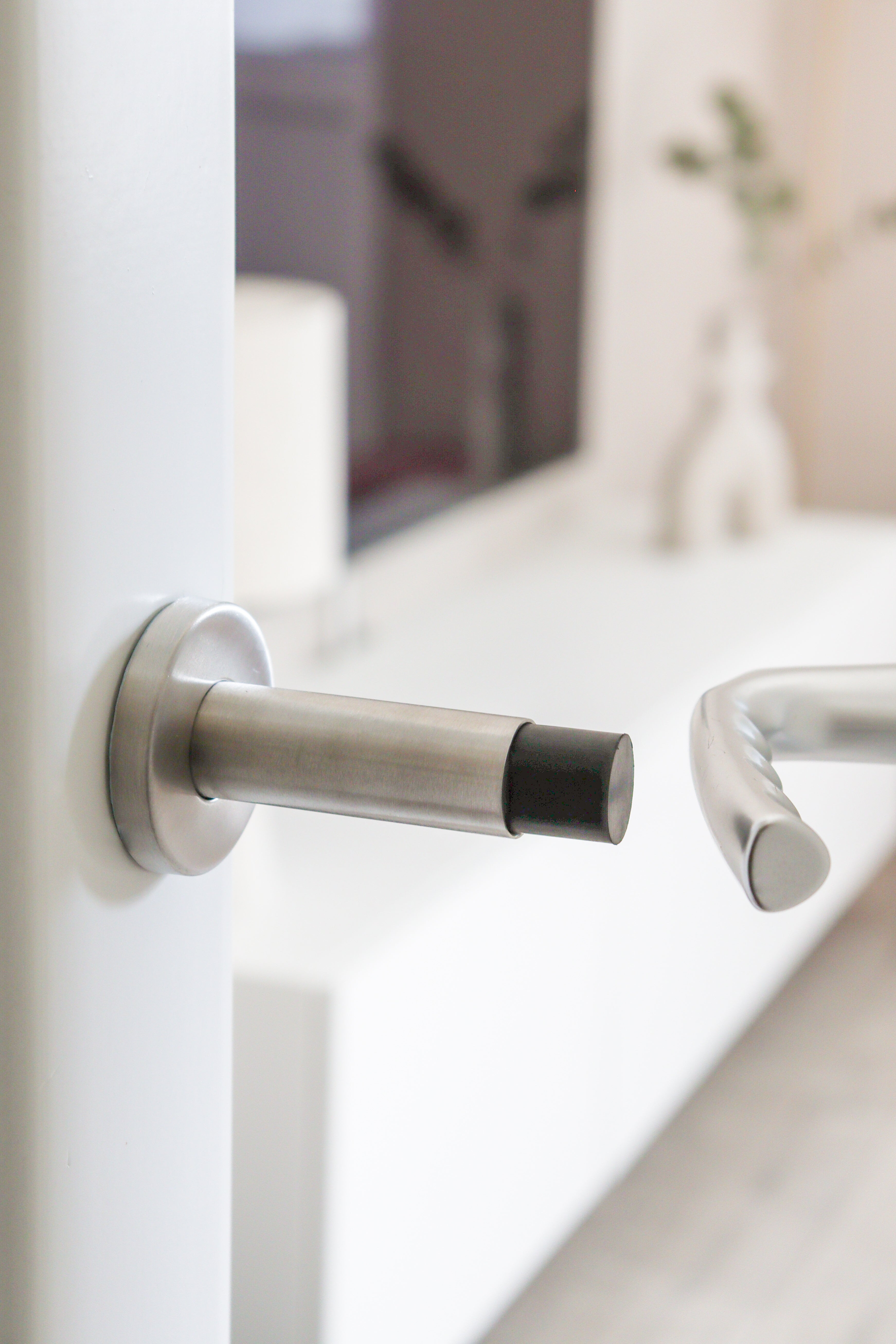This wall-mounted stainless steel door stop is the ideal, discreet solution to prevent damage to your walls. At 90 mm long, it creates the perfect distance for all your doors. The brushed stainless steel creates a modern, classic look that seamlessly complements all our stainless steel door hardware in your interior.