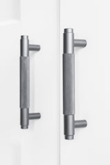The texture of the ribbing catches the light playfully, emphasizing the depth of the anthracite color. Its compact size makes this handle perfect for furniture with multiple small fronts, such as chests of drawers or bathroom cabinets. The anthracite color is flexible and complements both light and dark woods, as well as matte colors. It's the perfect, subtle eye-catcher.