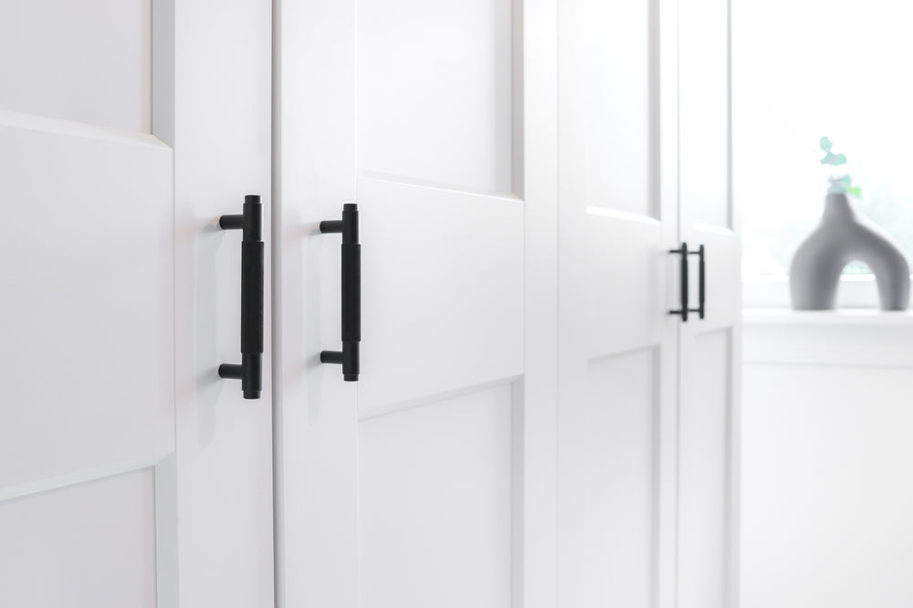 The deep black coating of this kitchen handle creates a sleek yet robust contrast on light-colored fronts. The unique ribbing is not only an aesthetic detail but also provides a pleasant, secure feel when opening. This compact, black furniture handle fits perfectly in modern loft styles or as a bold, minimalist element on kitchens, bathrooms, and bedrooms.