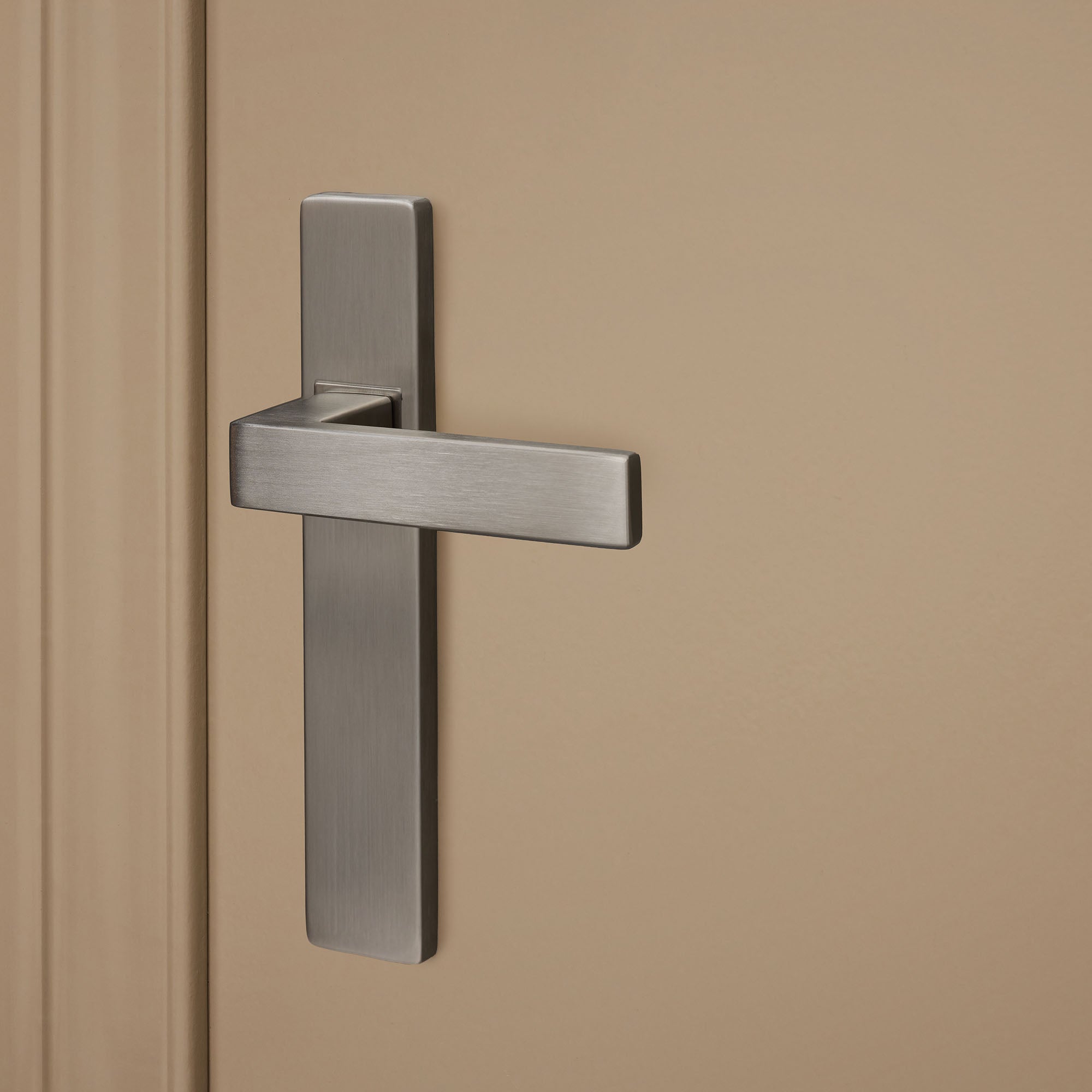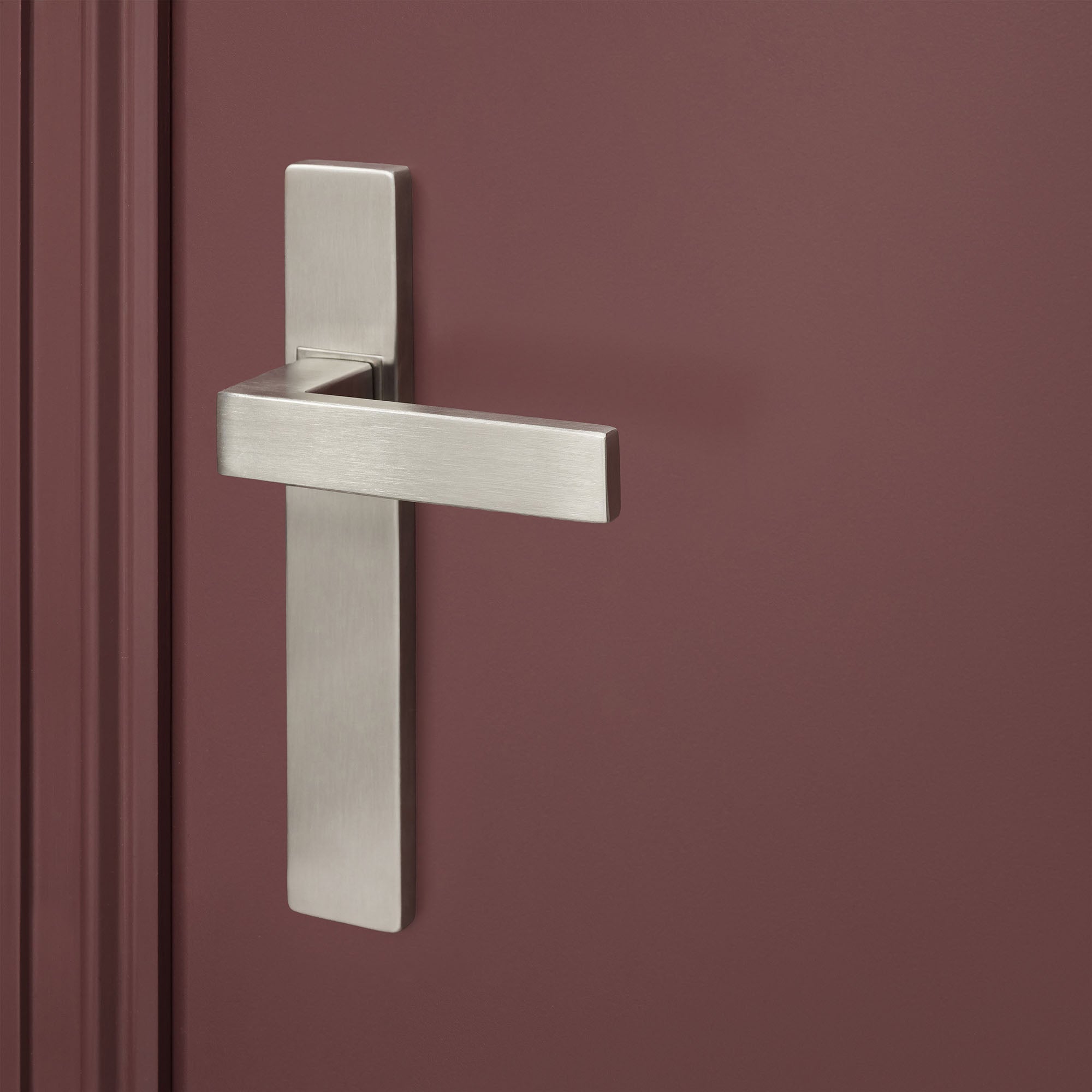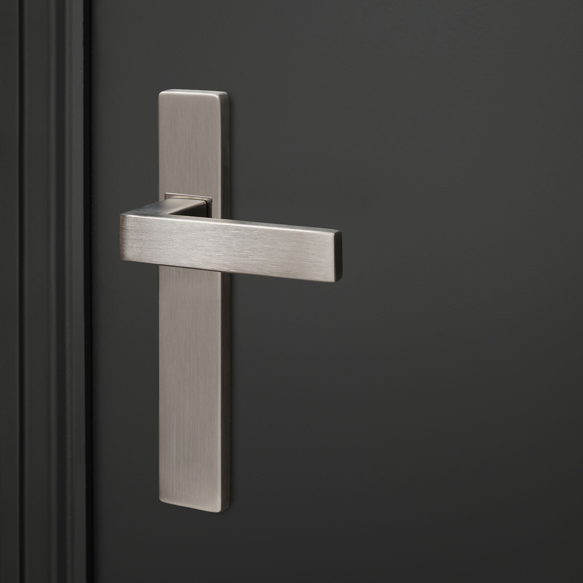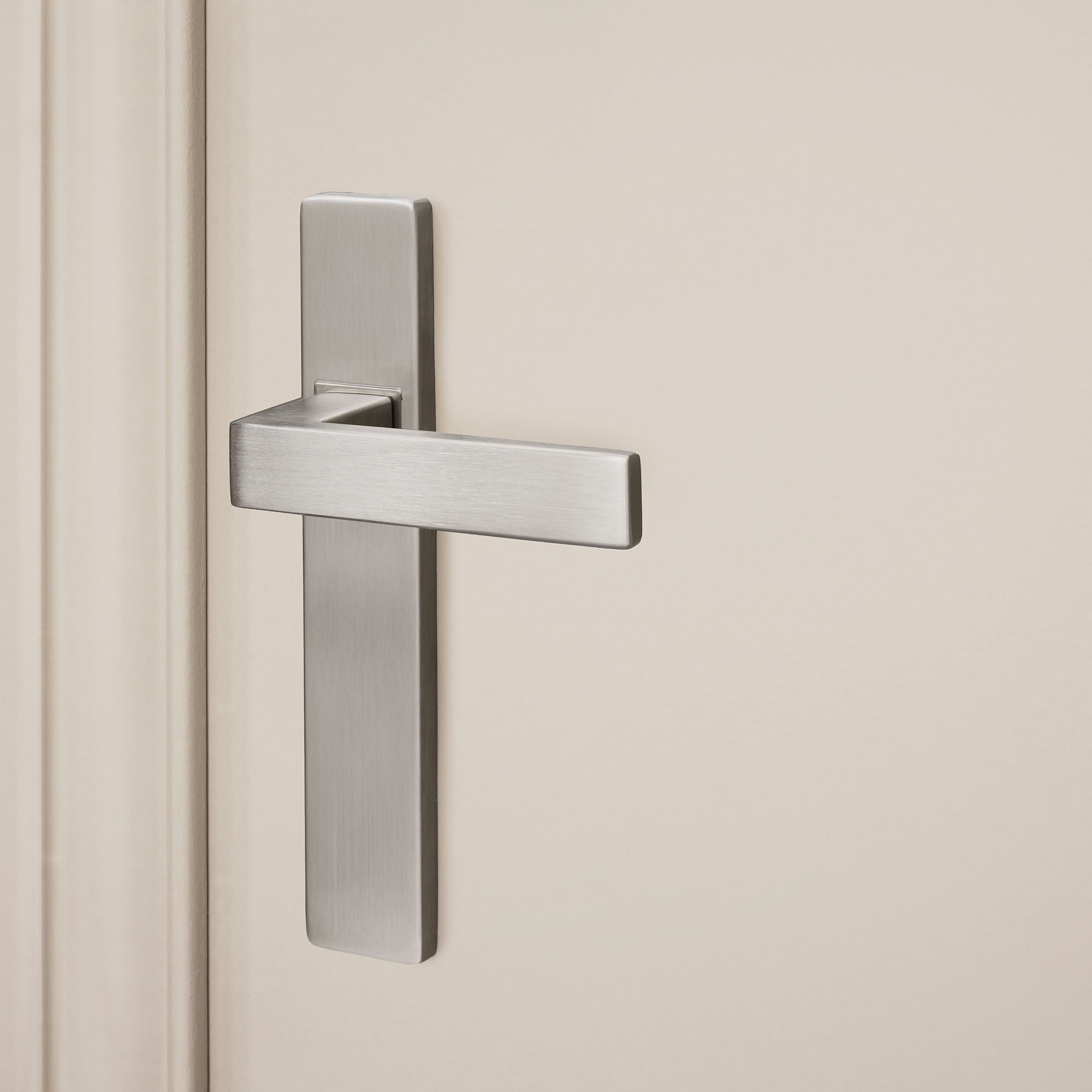 The door handle, mounted on a concealed backplate, creates a seamless, minimalist finish. Thanks to the neutral yet luxurious look of the brushed stainless steel, this model is a real eye-catcher. This makes it a perfect fit for almost any interior, from Scandinavian to industrial design. A subtle yet powerful detail in your home.