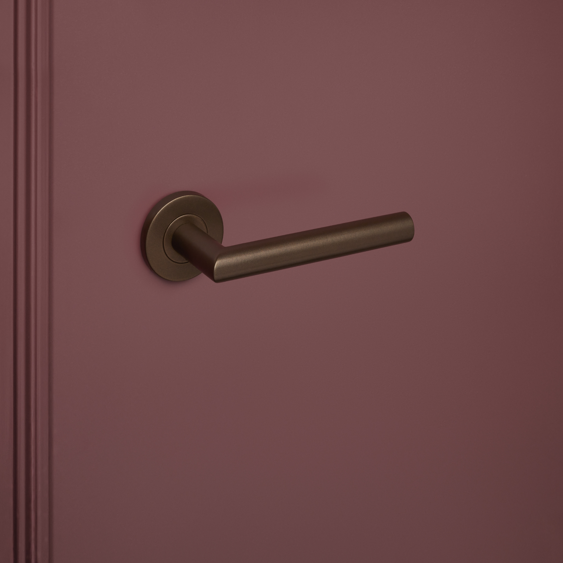 The attractive shape of the Mantua door handle is given a distinctive look by the bronze finish. This bronze door handle is ideal for classic, country, and Japanese interior styles. The warm, deep bronze accentuates the wood grain and complements other natural materials seamlessly.