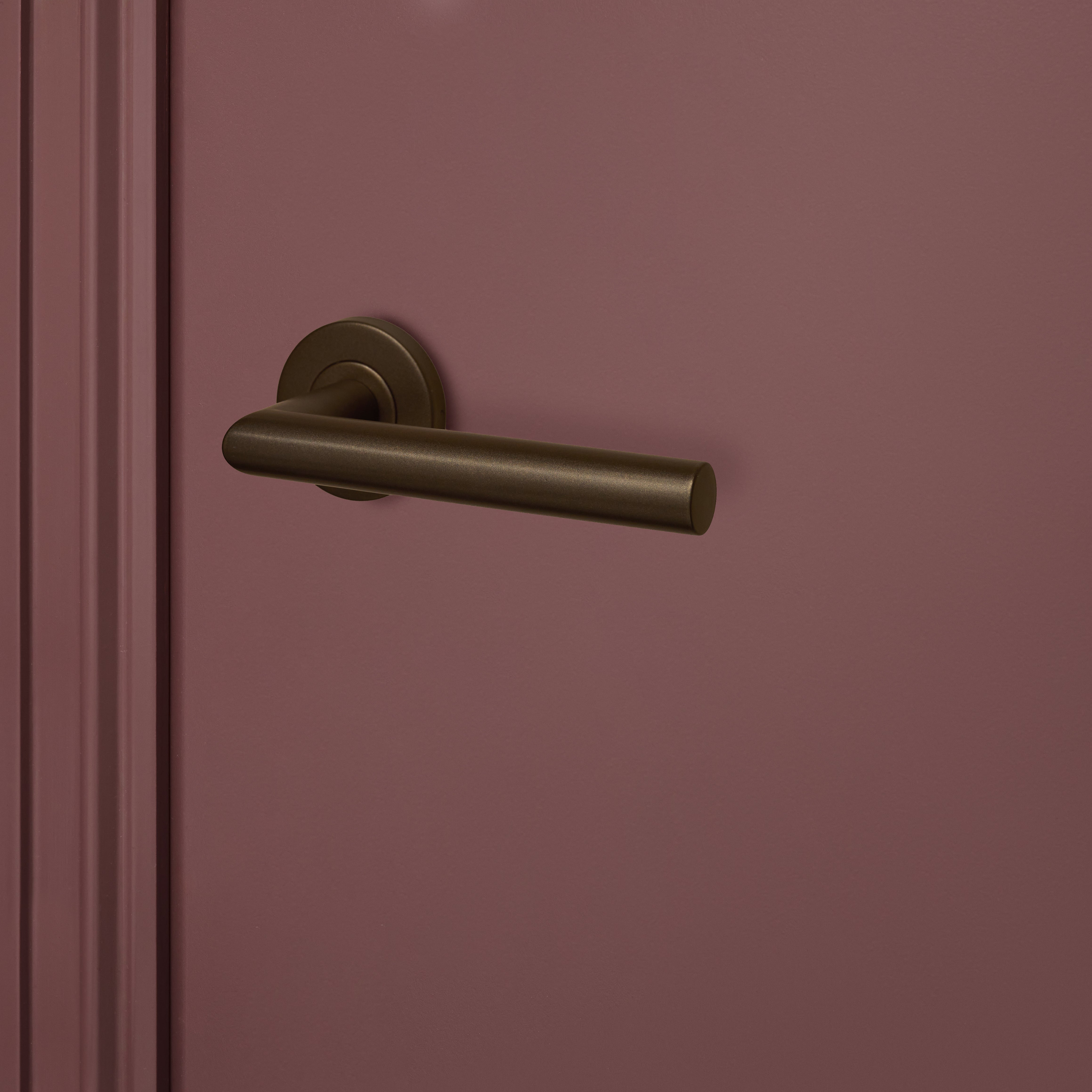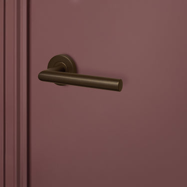 The Mantua door handle with a round rosette in bronze brings a touch of history and warmth to your home. Its sleek, contoured appearance makes it a seamless fit for any interior. Its unique bronze color makes it a perfect complement to other earthy tones in your home. A beautiful piece of door hardware that instantly adds character to any door.