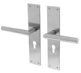 Do you have a door with a cylinder lock? Then this door handle from the Nuoro door handle series with a PC 55 backplate is an excellent choice. The brushed stainless steel gives a luxurious and sleek look that suits modern homes. The extra-large renovation backplate makes all the difference: old screw holes are immediately concealed.