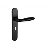 The Pratona door handle with a rounded backplate and SL56 keyway is an elegant choice for interior doors with a mortise lock. The matte black finish combined with the soft, cigar-shaped grip gives this handle a warm appearance with a modern twist.