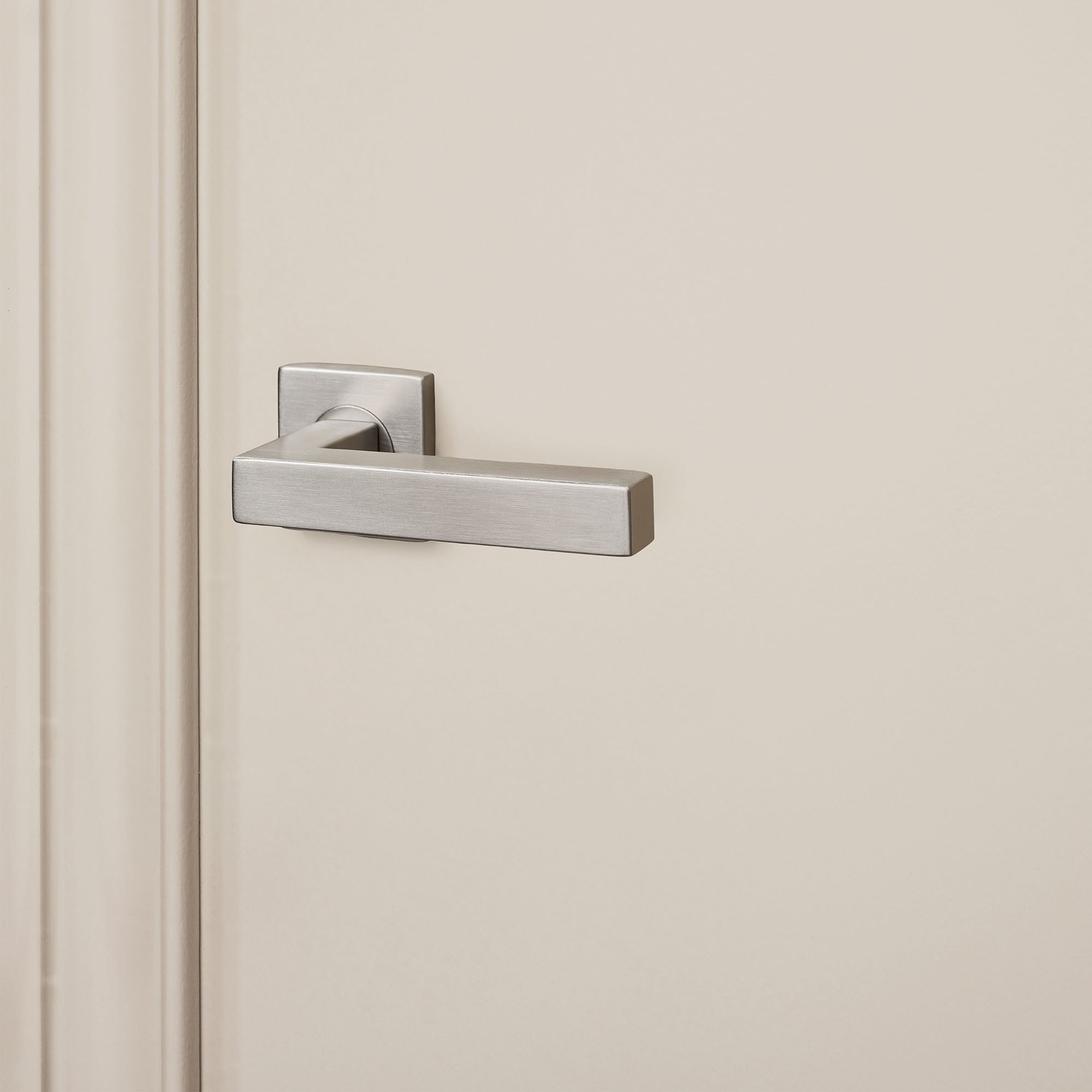 Looking for a sleek and timeless door handle? The Viterbo stainless steel door handle with a square rosette fits perfectly in a modern, industrial, or minimalist interior. The combination of robust stainless steel and clean lines creates a refined look that will last for years.